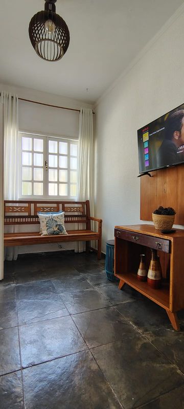A sala e a cozinha conjugadas criam um ambiente integrado, prático e funcional, ideal para quem gosta de cozinhar conversando com a família ou assistir TV enquanto prepara uma refeição rápida após a praia. Esse layout favorece a sensação de amplitude, facilita a decoração e é perfeito para quem busca um espaço aconchegante, fácil de limpar e manter organizado.